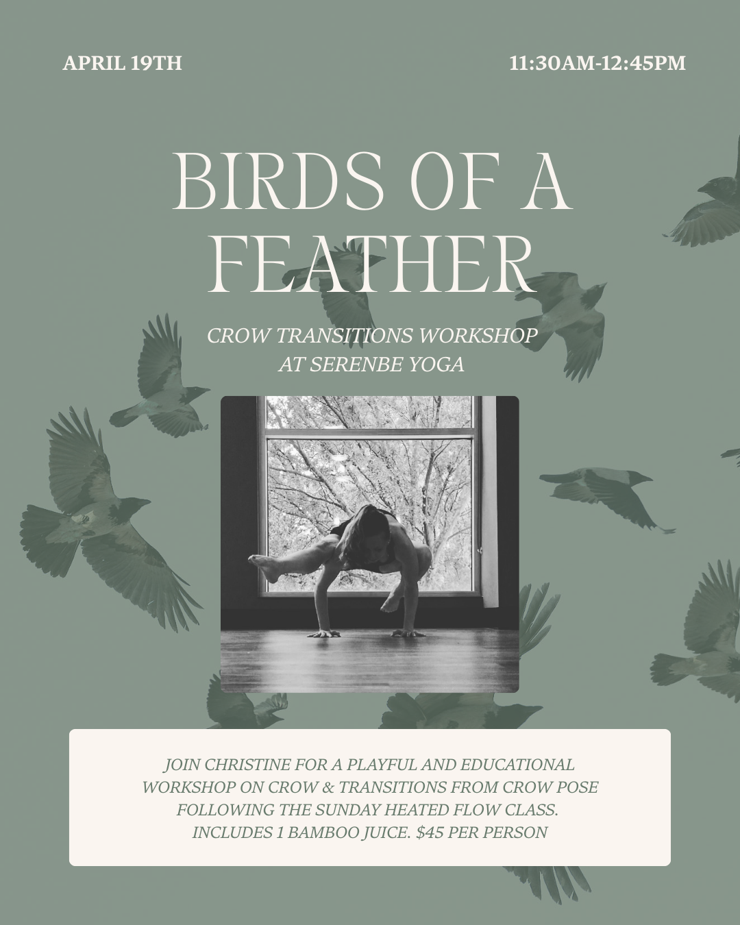 Join Christine for a playful and educational workshop on crow pose and transitions from crow pose. We’ll explore crow variations, including inversions, jumps, and rolls along with other arm balance variations accessible through crow. You’ll learn how to strengthen your arm balances and incorporate these transitions into your regular yoga practice.