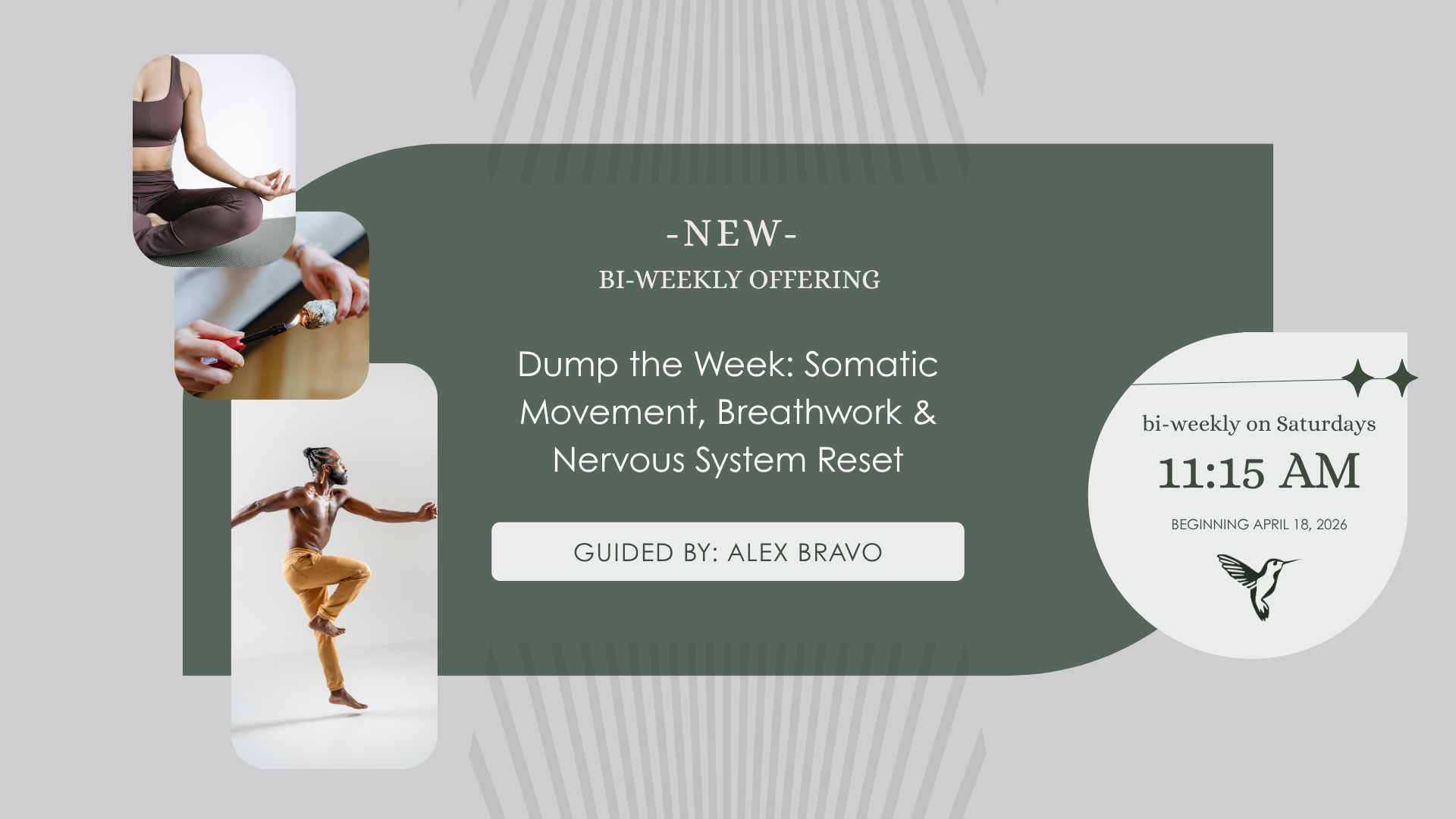 Whether you're running on adrenaline or running on empty, this bi-weekly Saturday class meets you exactly where you are and moves you somewhere better. In just one hour, you will shake off what the week put in your body, reset your nervous system, and arrive at your weekend fully restored. We move through intentional somatic flow to release what the body has been holding, transition into guided breath work to shift you out of fight or flight and into deep clarity, and close with the sound healing of chakra alignment tubes, gently attuning the body’s energy centers for deep restoration.